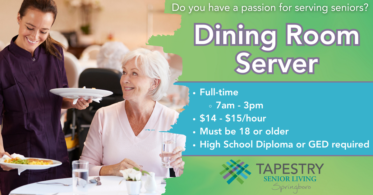 Start a meaningful career as a Dining Server with Tapestry Senior Living – Springboro!
